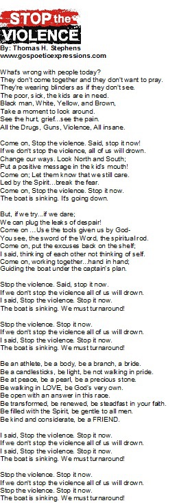 Please download the Stop The Violence song and lyrics below. Learn it and pass it on. Thomas will come and teach your group if his schedule permits. Give him a call or